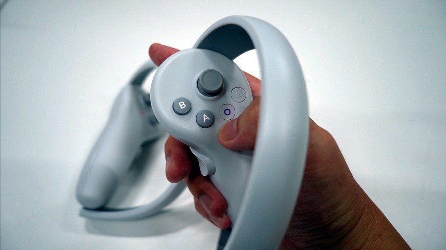 在手柄方面,PICO 4 一改傳統(tǒng)手柄定位環(huán)的圓形設(shè)計,采用了星環(huán)弧柱設(shè)計,造型有點像是半個莫比斯環(huán)。這個設(shè)計非常符合人體工學(xué),用戶握住手柄的手勢不會受到定位環(huán)的影響,同時在進行雙手合攏的動作時,兩個手柄也不容易發(fā)生碰撞。
