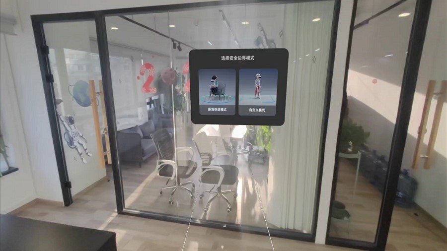 在剛開始使用 PICO 4 的時候,相信所有用戶都會體驗到彩色透視功能的魅力。這其實就要歸功于前面提到的頭顯正面中央位置的 RGB 攝像頭,所謂彩色透視就是用戶在佩戴頭顯的同時也可以通過攝像頭看到外面的環(huán)境。作為全球首款量產(chǎn)的彩色透視 VR 一體機,PICO 4 已經(jīng)在不少技術(shù)方向上走在了行業(yè)前端。