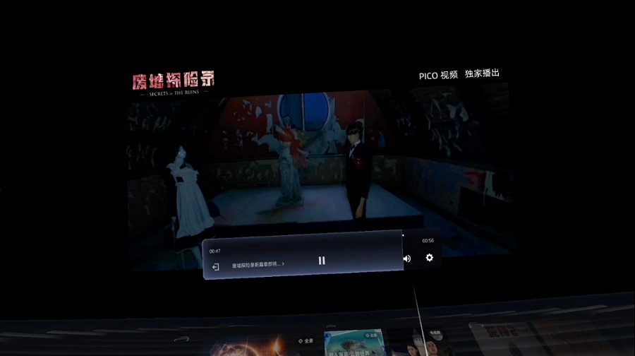 運動之余,我們開始了愉快的觀影。雖然 PICO 應(yīng)用商店里已經(jīng)有了不少 VR 觀影應(yīng)用,不過這里還是推薦 PICO 自家的 PICO 視頻這款應(yīng)用,因為它包含了大量精品內(nèi)容,同時還跨越了各種品類。