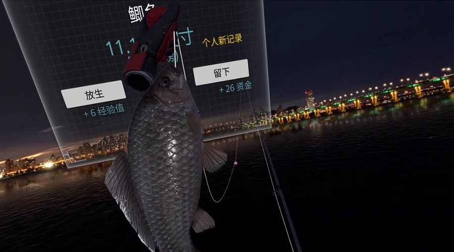 《Real VR Fishing》是一款追求模擬真實的 VR 釣魚游戲。在游戲中我們可以在不同的地方選擇不同的漁具和魚餌,來釣到不同品種的魚。在釣魚過程中,PICO 4 手柄的寬頻線性馬達給出了相當(dāng)不錯的震動反饋,這讓原本有點平淡無奇的釣魚運動也變得緊張刺激起來了,在忙碌一天之后,回到家里戴上 VR 頭顯釣釣魚,也是一種不錯的放松與享受。