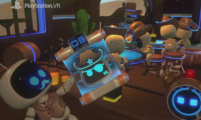 *《機(jī)器人救援(Robots Rescue)》也是一個玩家合作游戲,兩個玩家(1個PSVR玩家和1個電視玩家)共同與敵人作戰(zhàn),解救被困的機(jī)器人。PSVR 玩家需要控制 VR 機(jī)器人跳躍,拳打敵人,使用抓鉤救援失散的同伴。而電視玩家則需要駕駛 UFO 為 VR 玩家提供支持。