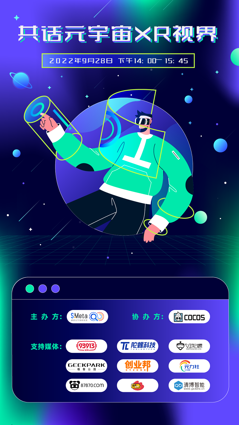 9月28日,由速途元宇宙研究院主辦、Cocos協(xié)辦的以“共話元宇宙XR視界”為主題開展線上沙龍分享會。特別邀請Cocos XR負責人王慶利,STEPVR合伙人、高級副總裁臧中堂,花房集團VP技術(shù)委員會主席唐賡,靈犀微光副總裁陳飛,從VR、AR領(lǐng)域等展開話題,為元宇宙愛好者、元宇宙行業(yè)的從業(yè)人員、企業(yè)打造的科普盛宴。