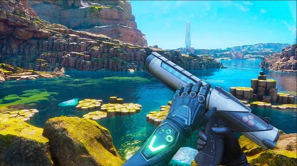 在科隆游戲展上,我體驗了兩個「Hubris」的試玩,一個是游戲的開場關(guān)卡,另一個是進入游戲幾小時后,更加注重在戰(zhàn)斗內(nèi)容上的關(guān)卡。前者Uplaod在之前已經(jīng)體驗過了,當時對是玩的感受是,游戲的視覺雖然趕不上「半條命:愛莉克斯」以及「孤聲2」這一類準大作,但是已經(jīng)非常接近了。而后者,更新的、更加注重戰(zhàn)斗的試玩中,展示了一個巨石林立的山谷環(huán)境,同樣是有著非常精致的畫面表現(xiàn)。