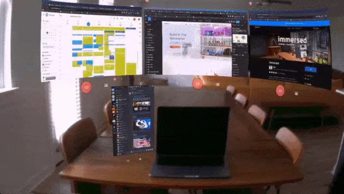 Meta透露,Quest Pro具有更高分辨率的彩色攝像頭和深度傳感器,使混合現(xiàn)實(shí)變得實(shí)用,根據(jù)GIF顯示的彩色透視功能,該功能可用于基于MacBoo的四個(gè)虛擬顯示器。不過(guò),鑒于這僅是GIF,因此無(wú)法真正評(píng)估透視功能的質(zhì)量。上周,扎克伯格還演示了一款MR擊劍游戲,但該視頻被嚴(yán)重壓縮。