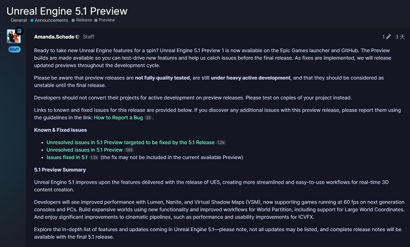 根據(jù)Epic Games官方網(wǎng)站公布的信息,虛幻引擎(UE)5.1的首個預(yù)覽版本現(xiàn)已發(fā)布,可以通過Epic Games Launcher和Github倉庫進(jìn)行下載。