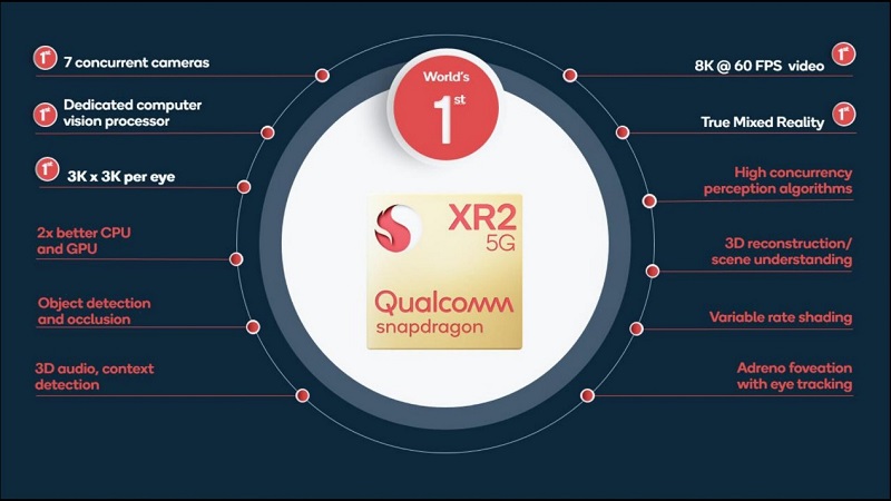 相比傳統(tǒng)的手機(jī)SoC,高通驍龍XR2 平臺具備許多專為XR所設(shè)計的特性:
