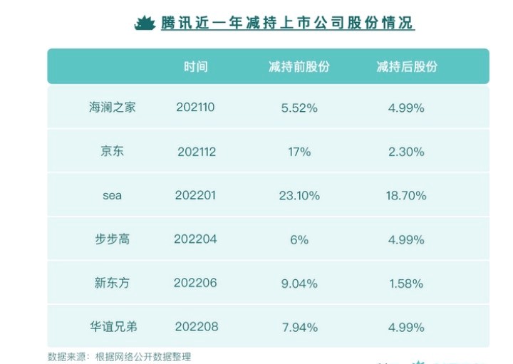 據(jù)國家市場監(jiān)管總局2022年1月5日的一批處罰公示,13起反壟斷案件就有9起關(guān)聯(lián)騰訊,占了近七成比例。這似乎也反證了騰訊已經(jīng)顯現(xiàn)的壟斷力。近年以來,持續(xù)強(qiáng)化平臺經(jīng)濟(jì)領(lǐng)域的反壟斷監(jiān)管也讓騰訊不得不調(diào)整自己對外投資的規(guī)模,從去年12月開始,騰訊減持京東的14.7%股份之后,其減持動作依然不斷,到今年的8月,騰訊在近一年的時(shí)間內(nèi),對其投資的多家上市公司完成了減持動作。