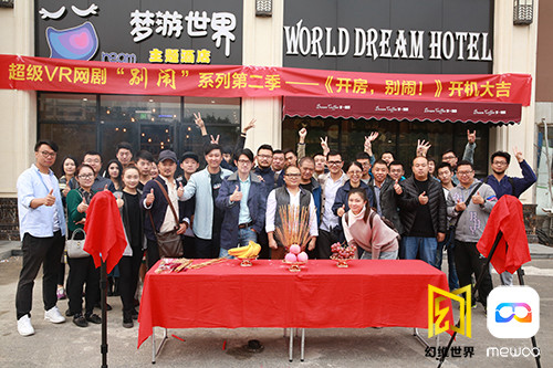 10月14日,由黑螞蟻(北京)新媒體文化有限公司旗下力合聚星工作室(Aggregations Studio)聯(lián)合DamaiVR出品的超級(jí)VR網(wǎng)劇“別鬧!”系列之《開房,別鬧!》,在北京夢游世界主題酒店正式開機(jī)?;镁S世界旗下MeWoo平臺(tái)全程參與了開機(jī)儀式,后續(xù),“別鬧!”系列VR網(wǎng)劇全部最新劇集將在MeWoo平臺(tái)獨(dú)家首播放出!