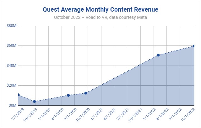 這一里程碑表明Quest平臺收入正持續(xù)增長;自Meta于2022年2月分享上一個(gè)里程碑以來,平均每月Quest Store銷售額已從5060萬美元增加到近6000萬美元。
