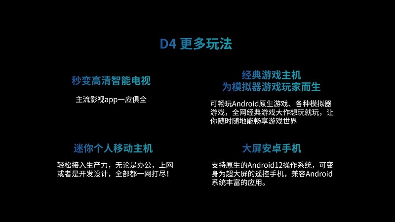 與G3 Max同步發(fā)售的還有全新8K播放器——GOOVIS D4。D4具有強(qiáng)大的多模式生態(tài)支撐性能,與G3 Max連接有更多玩法,兩者是一對“黃金搭檔”。D4與G3 Max 組合,支持動態(tài)桌面,未來還將實現(xiàn)支持全景視頻,實現(xiàn)畫面大小的多級縮放,并拓展混合現(xiàn)實功能。