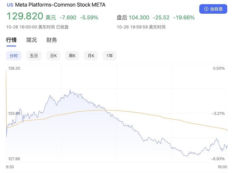 但華爾街并不買扎克伯格的單,在2022Q3財(cái)報(bào)發(fā)布后,Meta股票價(jià)格也由收盤時(shí)的129.82美元,在盤后交易中下跌20%至104.30美元,距離過去52周中的最高點(diǎn)353.83美元跌去超過2/3。