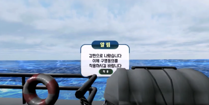 例如,學(xué)生可以進(jìn)入到虛擬船上的客艙場(chǎng)景中,在船上突發(fā)火災(zāi)時(shí),學(xué)生需要利用VR手柄的操作在客艙內(nèi)找到救生衣并穿上,然后盡快離開客艙到達(dá)甲板。在甲板上找到救生艇,解開欄桿上綁著的繩索,確認(rèn)下面是否有障礙物,然后推下救生艇。用左手捂住口鼻,把右手放在左臂上,確認(rèn)水上是否有障礙物,然后視線向前,抬起頭,像走路一樣直立跳入水中。用刀剪斷救生艇的繩索,并用救生艇上的信號(hào)彈發(fā)射信號(hào),等待救援。完成此類學(xué)習(xí)后,學(xué)生仿佛親身經(jīng)歷了一次船上事故,通過親手操作加深記憶,在現(xiàn)實(shí)中如果真的遇到類似危機(jī),能夠增加他們成功逃生的概率。