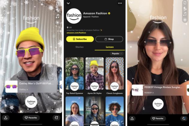 亞馬遜與Snap合作以提供增強(qiáng)現(xiàn)實(shí)時(shí)尚體驗(yàn),使消費(fèi)者可以通過(guò)數(shù)字方式試戴不同品牌和款式的眼鏡,并促成購(gòu)買(mǎi)。