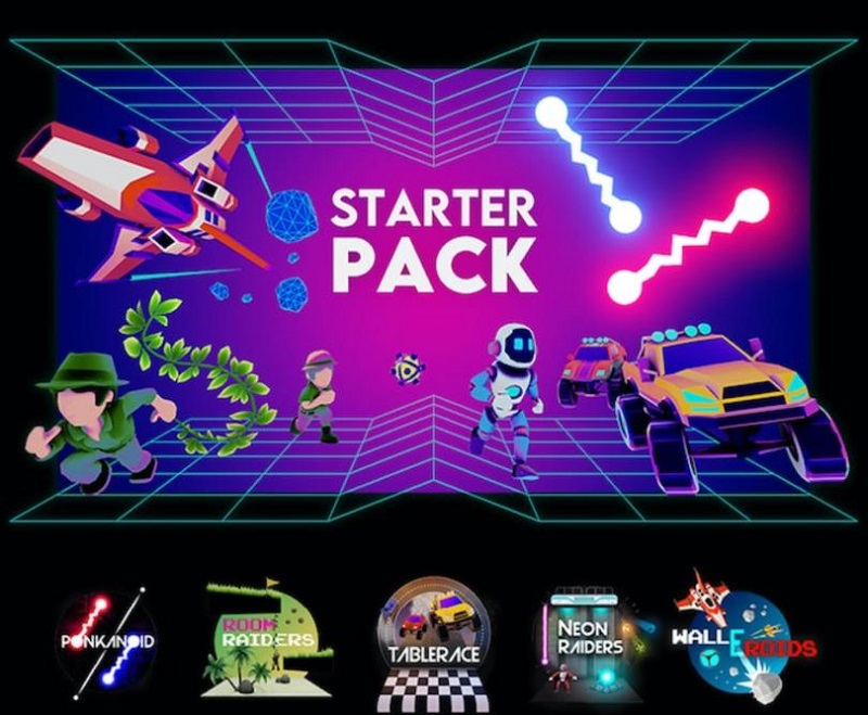 「S-ARKADE」新手包一共包括五款游戲:Pong風(fēng)格游戲「Ponkanoid」、橫向卷軸游戲「Room Raiders」、賽車游戲「Tablerace」、科幻體驗(yàn)「Neon Raiders」及街機(jī)游戲「WallERoids」。玩家可以使用典型的游戲控手柄玩上述每個(gè)游戲,也能使用智能手機(jī)在巨大AR賽道上駕駛汽車。