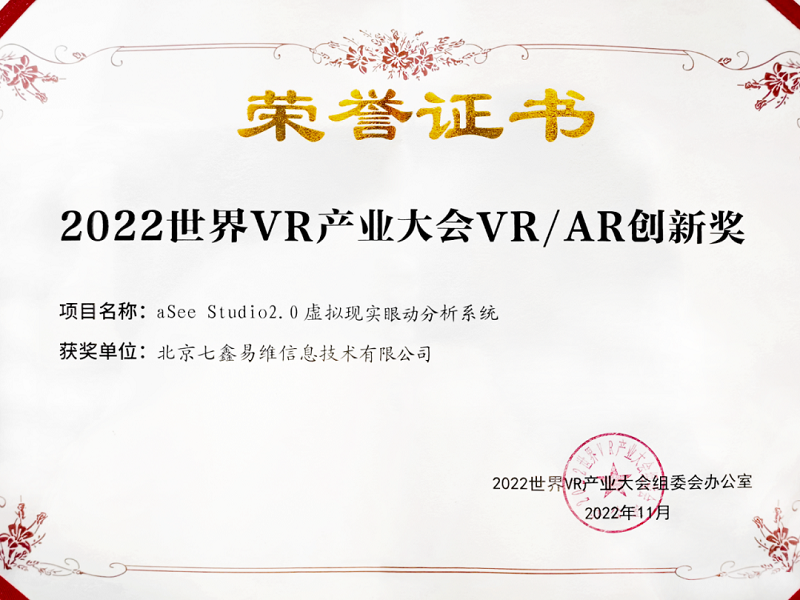 七鑫易維作為全球一流、國(guó)內(nèi)唯一具備全棧自研及制造能力的眼球追蹤解決方案商,再次得到評(píng)委會(huì)權(quán)威專家的一致認(rèn)可,憑借技術(shù)的領(lǐng)先性、設(shè)計(jì)的新穎性和應(yīng)用的廣泛性,斬獲「2022世界VR產(chǎn)業(yè)大會(huì)VR/AR創(chuàng)新獎(jiǎng)」。