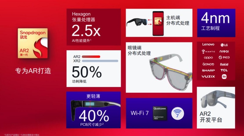 [1] 與搭載驍龍XR2平臺的無線AR智能眼鏡參考設(shè)計(jì)相比