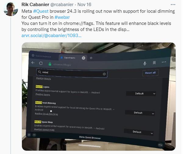 為此,Meta WebXR工程師Rik Cabanier在Twitter上提出了一個請求,要求解決由Local Dimming引起的任何不正確的渲染問題。Cabanier建議,Meta可以默認打開該功能。
