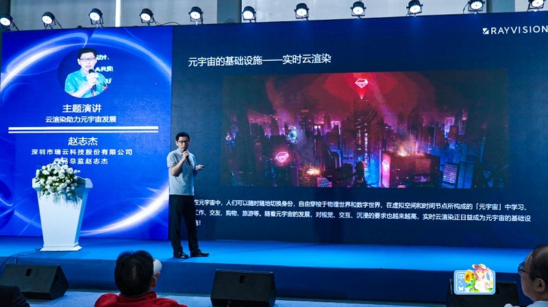 深圳市瑞云科技有限公司產品總監(jiān)趙志杰的分享主題是《云渲染助力元宇宙發(fā)展》。他認為,隨著元宇宙的發(fā)展,對視覺、交互、沉浸的要求也越來越高,實時云渲染利用云端計算資源,通過超高清、全實時、可交互、沉浸式的在線虛擬模式,打破地域空間限制、實現(xiàn)終端設備輕量化,滿足更多潛在用戶便捷瀏覽、個性化配置需求等,正日益成為元宇宙的基礎設施。