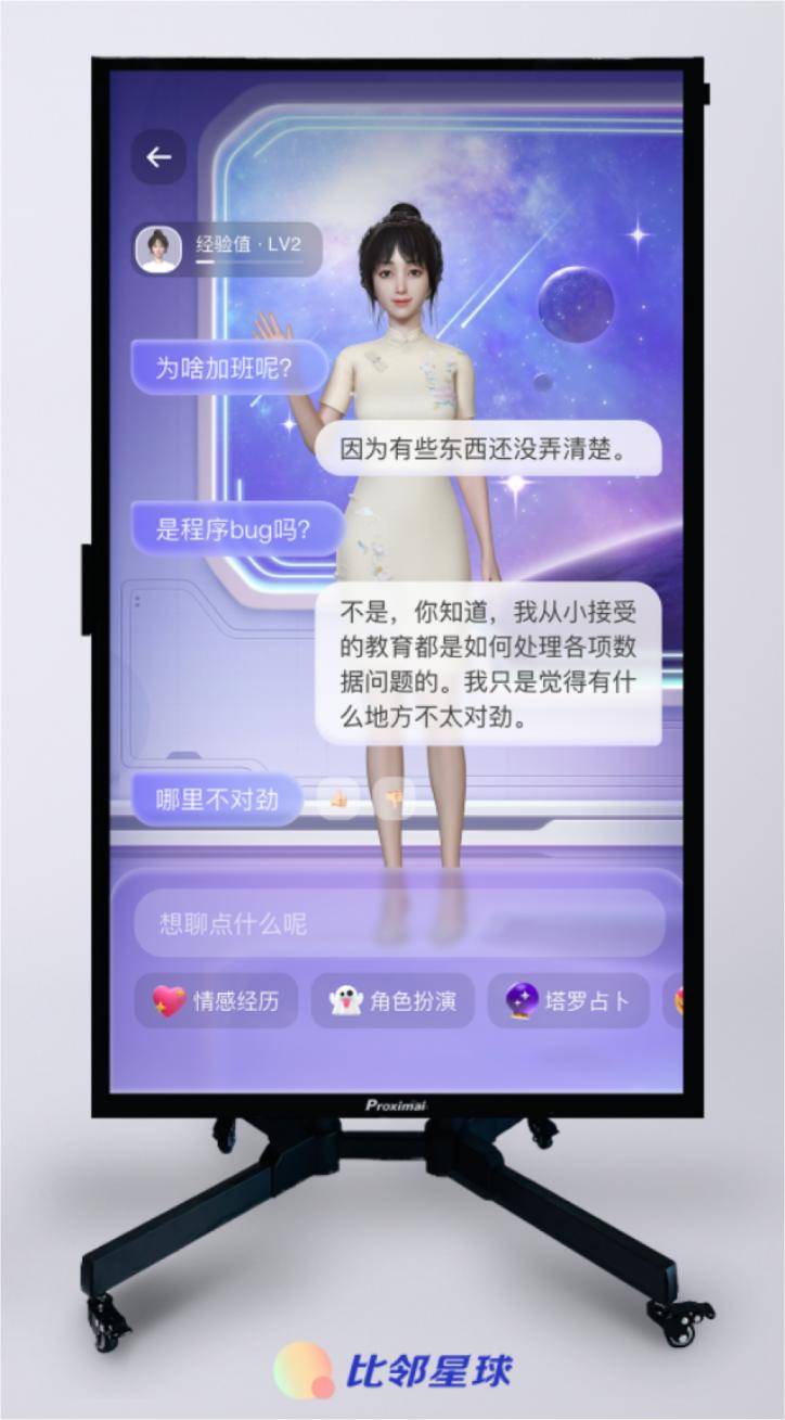 其中,比鄰AI交互虛擬人智能終端一體機(jī)提供定制化的企業(yè)專屬虛擬人,用戶可自由定制形象、服飾、語音、動(dòng)作和背景,滿足“面對(duì)面”互動(dòng)交流、智能問答、服務(wù)導(dǎo)覽等服務(wù)。產(chǎn)品面向金融、公共交通、政務(wù)、運(yùn)營商、媒體等行業(yè),通過語音識(shí)別、語音合成、自然語言理解、圖像處理、口唇驅(qū)動(dòng)及虛擬人合成等AI核心技術(shù),適應(yīng)不同場(chǎng)景的豐富化業(yè)務(wù)需求。