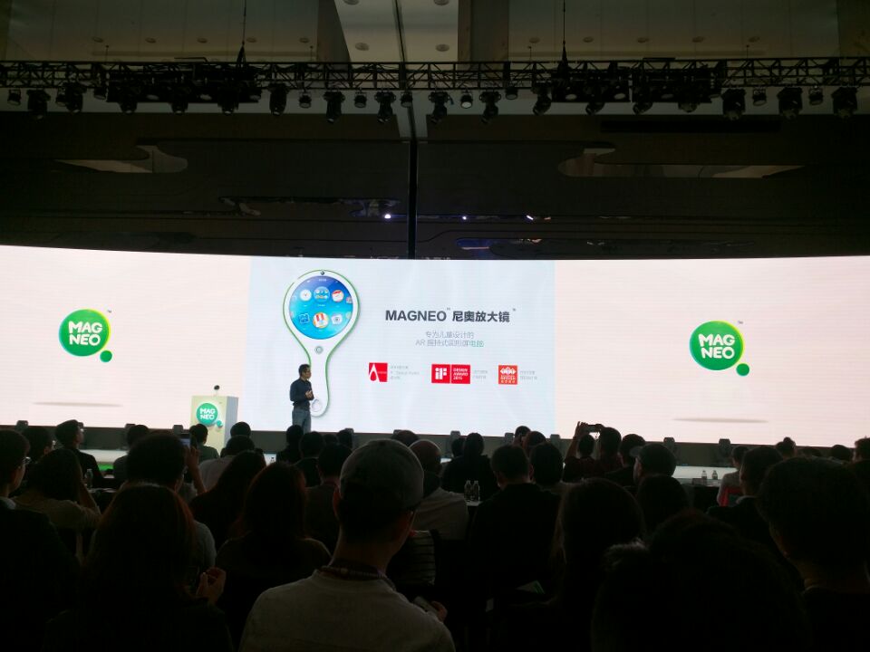 同日,小熊尼奧也在上海正式發(fā)布兒童智能產(chǎn)品“MAGNEO™尼奧放大鏡”,這款 MAGNEO™尼奧放大鏡是針對3-16歲的學齡期兒童開發(fā)的AR手持式閱讀設備,以AR增強現(xiàn)實技術為核心,配置了超強性能運算單元和適應圖像識別要求的高清高速攝像頭,采用圓形大屏幕設計,可握持式把手符合人體工程學,適合兒童使用。這款產(chǎn)品在2014年6月就已完成設計,并獲得了2016中國成功設計獎,意大利A’Design Award2015設計大獎和2015德國iF設計獎。16G版產(chǎn)品售價1699元,今日正式開始預售。