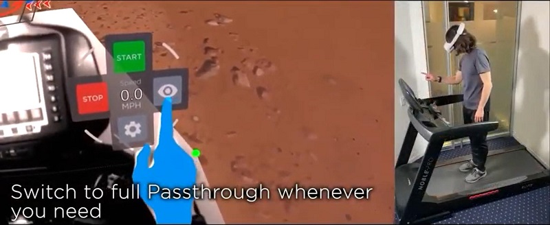 在VR世界中,你甚至可以穿過紅石峽谷或布滿太陽帆的外星表面。該應用程序還會顯示跑步機的虛擬副本,因此并不用擔心撞到跑步機前端或從跑步機后端滑落。此外,如果你的重心發(fā)生偏離,系統(tǒng)還會自動發(fā)出警報來提醒你矯正姿態(tài)。為了讓跑步體驗盡可能安全且簡單,Quest 2會通過手部追蹤而不是手柄來捕捉雙手動作。