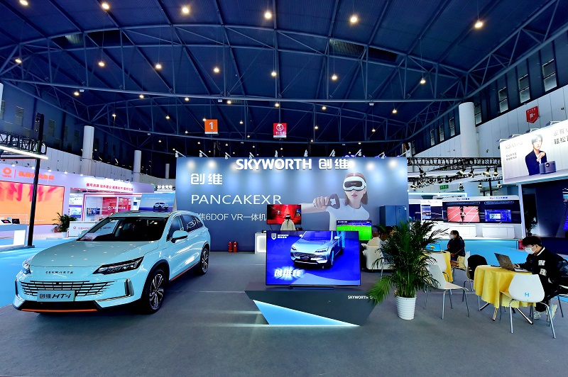 創(chuàng)維攜電視、汽車、VR一體機等多款產(chǎn)品參展,創(chuàng)維PANCAKE 1C VR一體機采用前沿光學方案Pancake超短焦折疊光學,讓VR成功實現(xiàn)“瘦身”,為現(xiàn)場體驗的用戶帶來超輕的佩戴舒適感,搭載6DOF+高通曉龍XR2芯片,更加絲滑流暢。