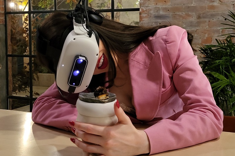 該裝置的靈感來自FT Marinetti的「未來主義者食譜」(The Futurist Cookbook),這是一本暢想未來的虛構食譜集。該裝置一次可招待16名客人,每個人都要戴上配有外部手部追蹤器的Meta Quest 2 VR頭顯,品嘗由詹姆斯比爾德獲獎者、米其林星級廚師Chintan Pandya為他們烹飪的菜肴。