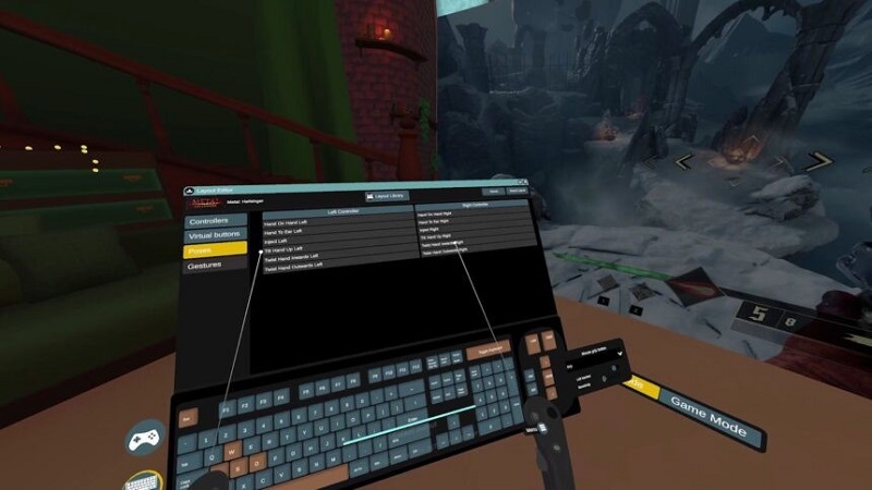不僅如此,玩家還可以采用VR手柄進(jìn)行游戲,該應(yīng)用兼容傳統(tǒng)鼠標(biāo)、鍵盤(pán)或游戲手柄以適應(yīng)VR控制,除此之外,「GameVRoom」還提供了廣泛的按鍵選項(xiàng)配置,以支持玩家更便捷移動(dòng)和角色動(dòng)作。