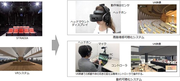 Takenaka Corporation在設(shè)計階段創(chuàng)建了一種“便攜式音響系統(tǒng)”,該系統(tǒng)將該公司開發(fā)的室內(nèi)聲場模擬器“STRADIA”的“聲音再現(xiàn)”、并與模擬建筑物內(nèi)部空間的VR圖像同步。