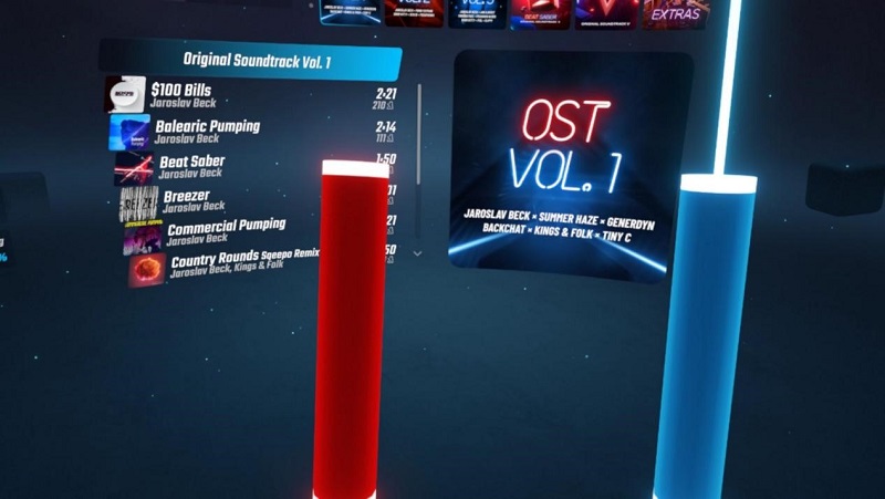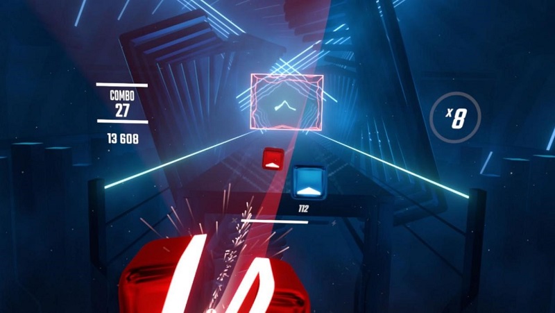 下面我們實(shí)際體驗(yàn)一下大朋E4的游戲表現(xiàn)。對于一款PCVR頭顯,除了自身的性能與體驗(yàn),對Steam平臺的內(nèi)容兼容性至關(guān)重要。因此,這次我們選了多款比較有代表性的VR游戲進(jìn)行試玩體驗(yàn),最終的結(jié)果令人滿意。 第一款游戲毫無懸念的就是VR“殺手級應(yīng)用”《Beat Saber》,這款主打快節(jié)奏的音樂節(jié)奏游戲?qū)τ陬^顯和手柄的定位準(zhǔn)確性要求都很高。