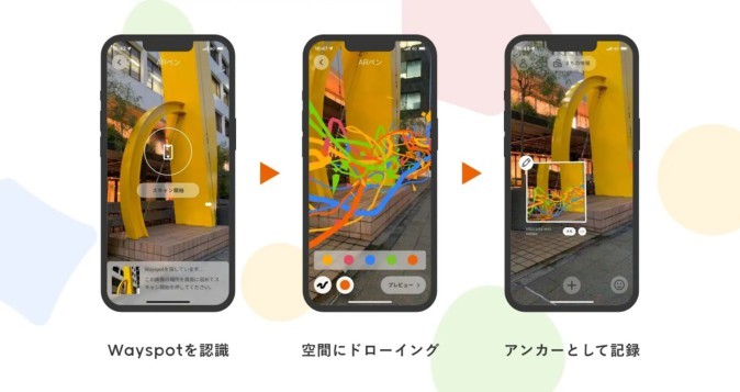 「Finding Serendipity」利用了Niantic的Lightship VPS(視覺定位系統(tǒng)),當(dāng)識別出城市中的Wayspots時,用戶可以使用AR筆在空間中畫線和畫圖。通過將其記錄為錨點(diǎn),其他訪問同一地點(diǎn)的用戶也能以厘米為單位看到同步3D繪圖。