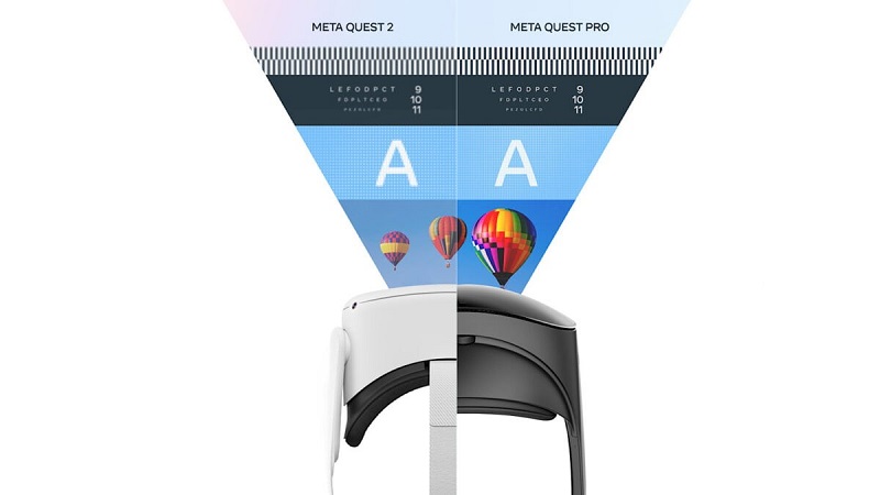 Meta表示,Quest Pro的PPD比 Quest 2多10%(22PPD比20PPD),PPD值將屏幕和光學(xué)器件都考慮在內(nèi),并測量視場角1°范圍內(nèi)的像素?cái)?shù)。