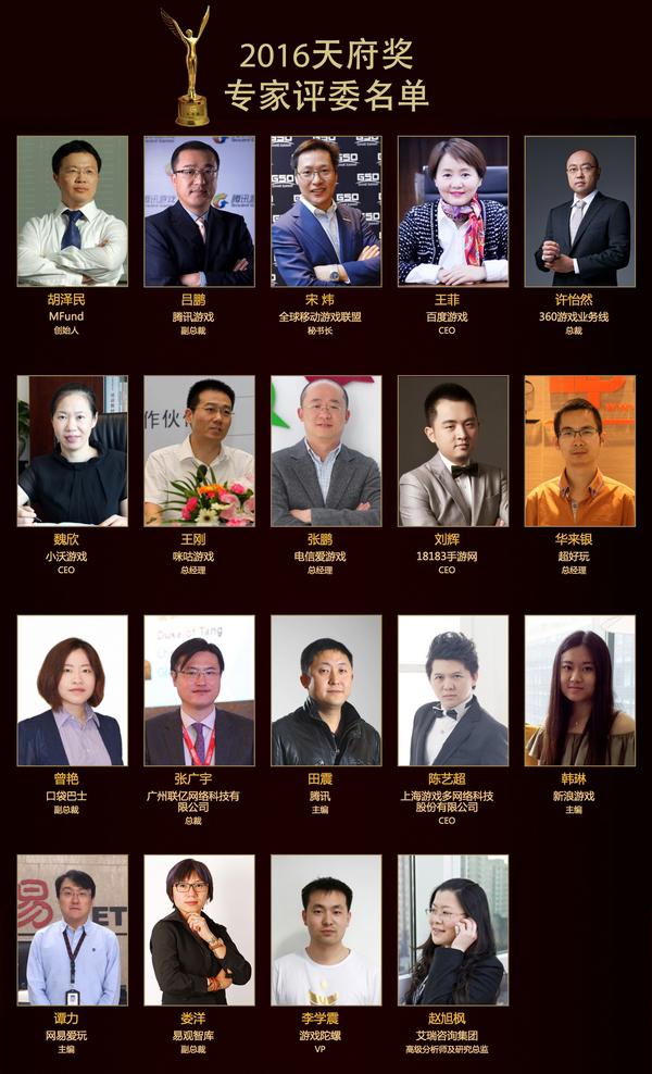 《王者榮耀》制作人李旻 《花千骨》制作人焦俊 《中超風(fēng)云》制作人王高楠 《冒險(xiǎn)與挖礦》制作人陸家賢 《仙劍奇?zhèn)b傳3D回合》制作人劉驍 《時(shí)空獵人》制作人劉泳 《王者之劍》制作人王峰 《我叫MT》制作人邢山虎 《烈火戰(zhàn)神H5》制作人姬海江 《時(shí)尚都市》制作人沈衛(wèi) 《骷髏?!稸R游戲制作人王科 《超忍英雄》VR游戲制作人童洋 《九陰真經(jīng)》、《太極熊貓》、《天堂2》制作人孫大虎 《龍珠激斗》主策彭凌峰 《傳奇世界H5》制作人凌海 《古劍奇譚》及《神舞幻想》系列出品人孟憲明 《愚公移山》、《暗黑之王》制作人陳陳 《熹妃傳》制作人吳杰 《雇傭兵VR》主策劃兼產(chǎn)品經(jīng)理胡唯宇 《有殺氣童話(huà)》游戲制作人吳紫鄂 《找你妹》制作人張帆