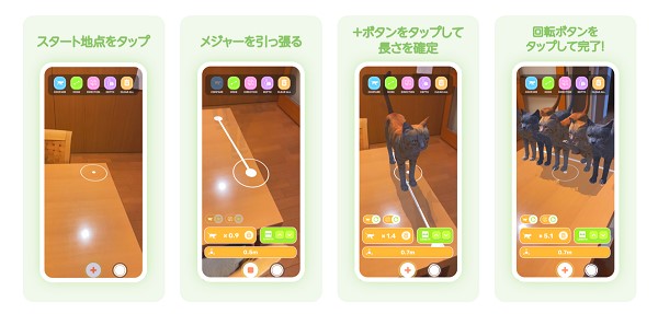 AR應(yīng)用程序「Mejani Maru」是Designium開發(fā)的娛樂測(cè)量工具,旨在“讓AR測(cè)量變得更有趣更方便”。用戶可以直觀地測(cè)量身邊物體或場所的長寬高、面積等,甚至可以以“動(dòng)物”作為度量單位進(jìn)行測(cè)量,例如: