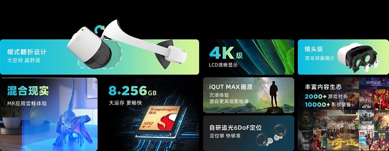 12月26日,國(guó)內(nèi)知名XR廠商愛(ài)奇藝奇遇在京召開媒體發(fā)布會(huì),正式發(fā)布旗下首款消費(fèi)級(jí)MR產(chǎn)品——奇遇MIX。作為全球首款搭載雙目視覺(jué)彩色透視方案的消費(fèi)級(jí)MR,奇遇MIX主機(jī)配備兩顆1600萬(wàn)像素透視專用全彩攝像頭,相較于單目方案,可實(shí)現(xiàn)更加自然舒適的彩色透視效果,并能夠基于MR技術(shù)衍生出更高質(zhì)量的混合現(xiàn)實(shí)體驗(yàn)。需要指出的是,創(chuàng)新的MR體驗(yàn)正是奇遇MIX的點(diǎn)睛之筆,本次隨產(chǎn)品一同發(fā)布的便有《恐龍星球MR》《MR show-葉悠悠》等在內(nèi)的多款MR應(yīng)用。