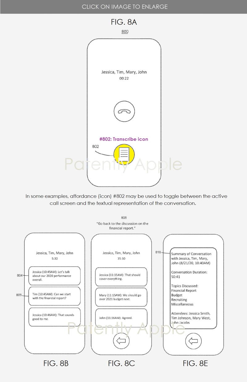 蘋果專利圖8A/C/E說明了轉(zhuǎn)錄和轉(zhuǎn)錄輔助的過程。