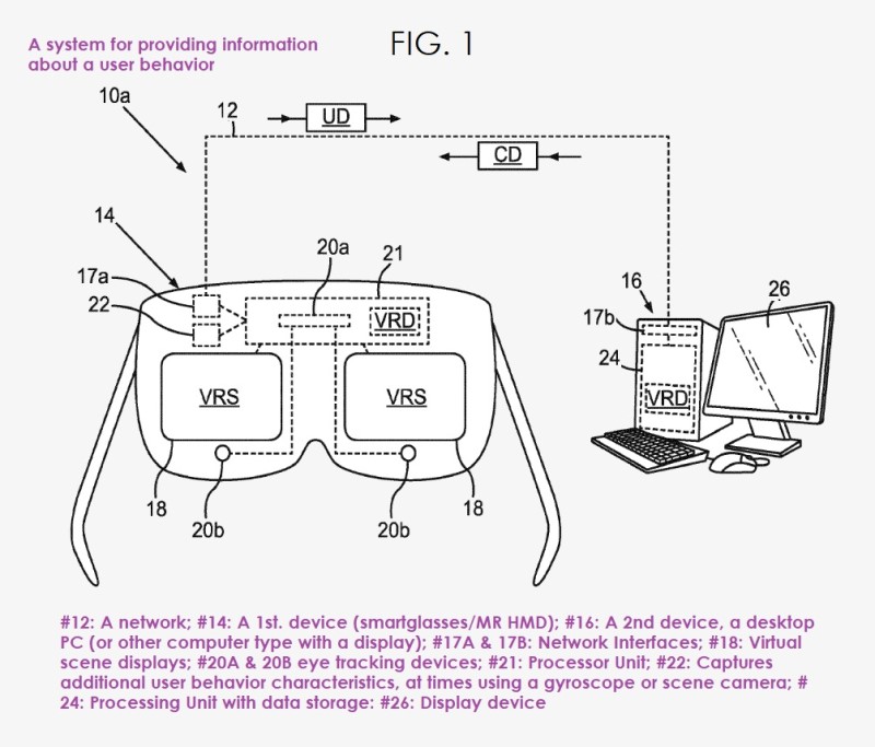 美國專利商標局公布了蘋果一項專利申請,該申請涉及通過智能眼鏡或MR HMD網絡向Mac或iPhone/iPad等第二設備提供關于至少一個參考對象(特別是虛擬參考對象)的用戶行為信息。本發(fā)明還包括一種用于在特定虛擬場景中提供關于用戶行為信息的系統(tǒng),該發(fā)明適用于游戲、飛行模擬訓練等混合現(xiàn)實環(huán)境。