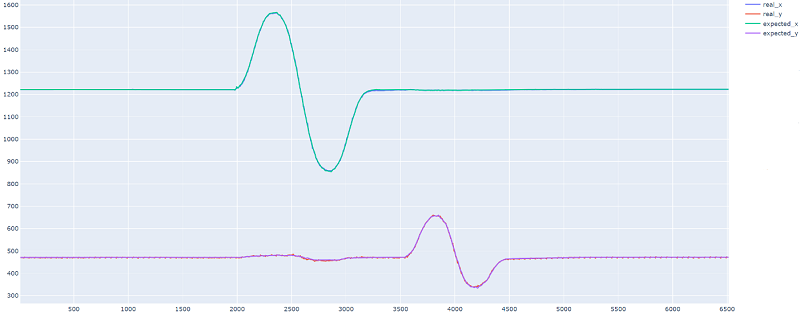(藍色軌跡為頭盔6dof-x軸運動軌跡(vslam算法輸出),綠色軌跡為頭盔真實6dof-x軸運動軌跡;紅色軌跡為頭盔6dof-y軸運動軌跡(vslam算法輸出),紫色軌跡為頭盔真實6dof-y軸運動軌跡)
