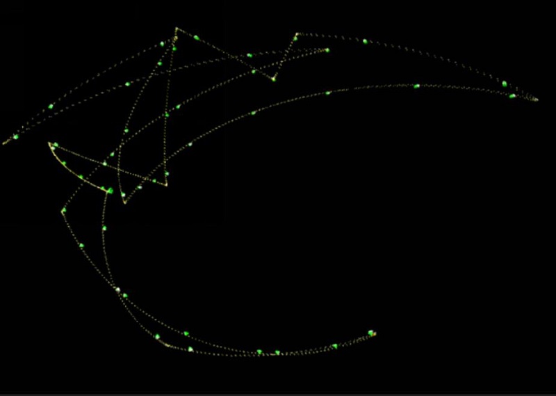 (optitrack實驗室環(huán)境實測效果:黃色軌跡是頭盔6DoF,白色軌跡是optitrack 6DoF)