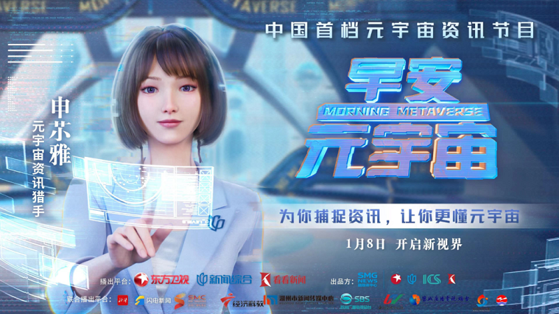 1月8日起,由SMG融媒體中心推出的國內(nèi)首檔元宇宙資訊節(jié)目《早安元宇宙》在東方衛(wèi)視周日早間八點檔、STV新聞綜合頻道、看看新聞Knews和全國多個媒體合作平臺播出。在這檔全新元宇宙資訊垂直賽道的節(jié)目中,“元宇宙資訊獵手”——SMG的虛擬新聞主播申?雅,以超寫實職業(yè)版造型出鏡,用通俗易懂的方式為觀眾播報和解讀元宇宙的最新消息。