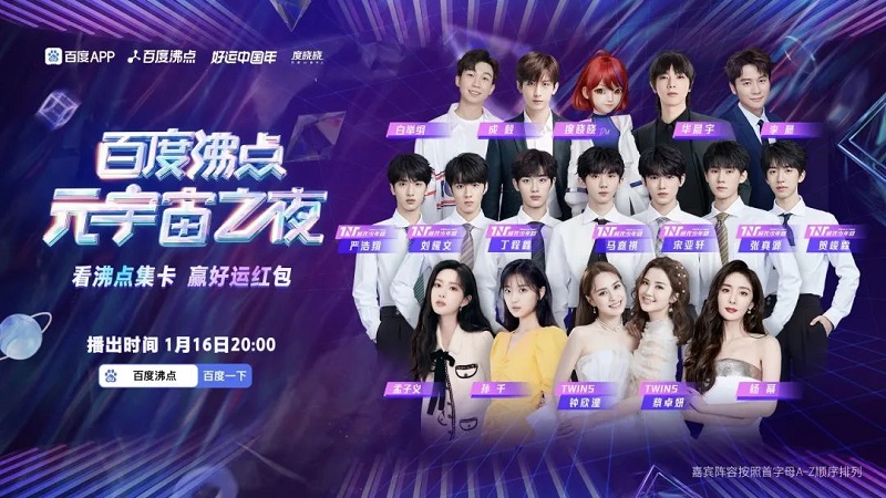 1月16日,全球首個Web3.0元宇宙紅毯派對——百度沸點元宇宙之夜圓滿收官,在百度APP、希壤、好看視頻、YY直播、B站、視頻號、微博、愛奇藝平臺同步直播的3小時期間,吸引了1億人次共同觀看。