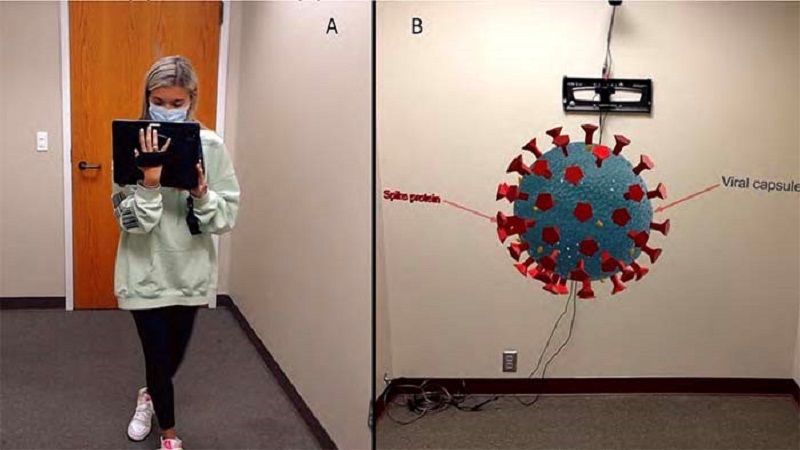 領(lǐng)導(dǎo)這項(xiàng)研究的是健康傳播學(xué)副教授Mugur GeanaMugur Geana,共有44名學(xué)生參與生物病毒學(xué)的課程。在實(shí)驗(yàn)過程中,視頻組的參與者的視力被跟蹤,以驗(yàn)證他們對視頻中的圖形元素的關(guān)注。對于AR組的參與者,房間里的攝像頭和他們平板電腦里的攝像頭記錄了他們與虛擬3D模型的互動(dòng),以供后續(xù)分析。