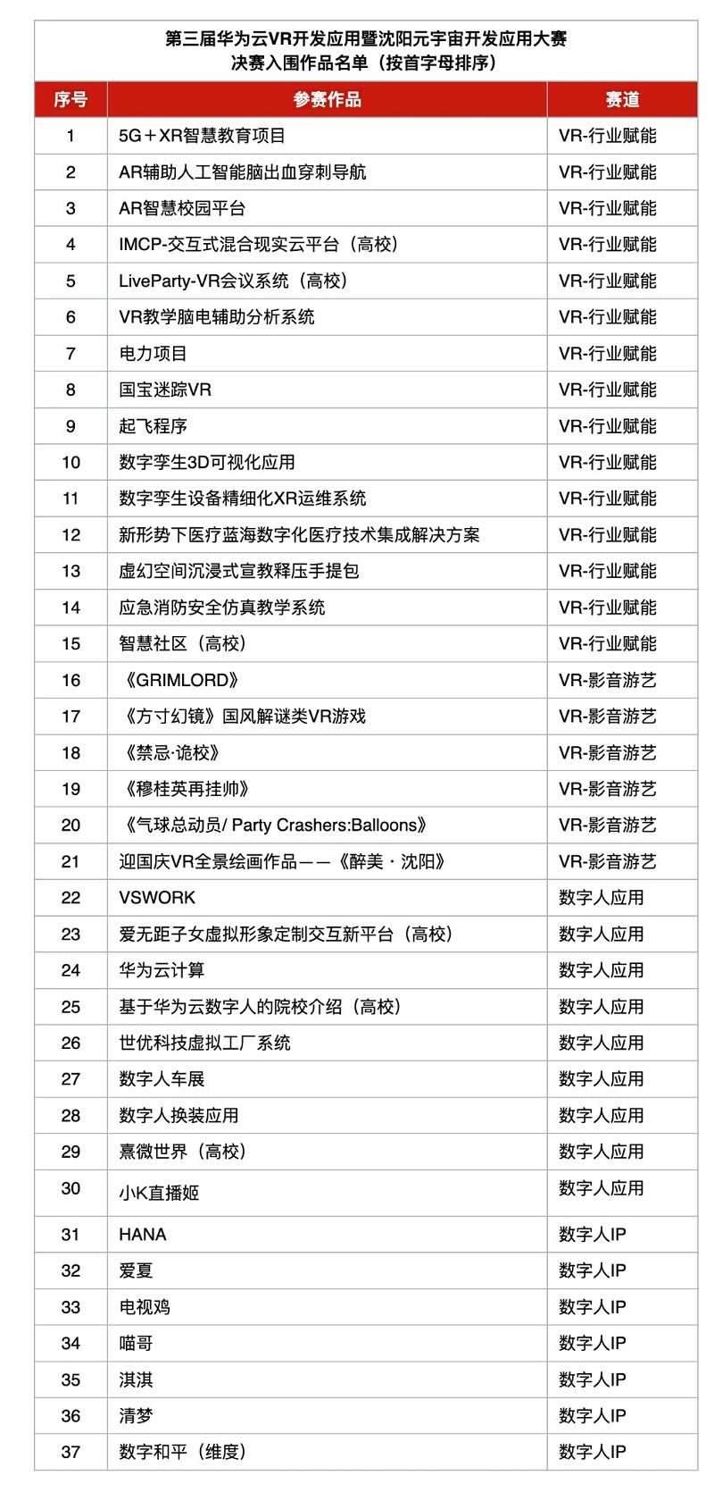 經(jīng)過(guò)專家評(píng)審團(tuán)審慎的線上函審評(píng)定,有37支團(tuán)隊(duì)最終入圍總決賽。他們將于2月13日齊聚沈陽(yáng)和平區(qū),共同角逐影音游藝、行業(yè)賦能、數(shù)字人IP、數(shù)字人應(yīng)用四大賽道19項(xiàng)大獎(jiǎng)。