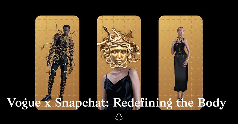 “Vogue x Snapchat: Redefining the Body”將在倫敦市中心的攝政街開幕,展出時間為2023年2月18日至3月5日。該展覽采用的AR技術(shù)不僅可以被現(xiàn)場參展者使用,還可以提供給世界各地的Snapchat用戶。在Vogue和Snapchat的首屆展覽上,定制的AR濾鏡獲得了超過4800萬的瀏覽量。