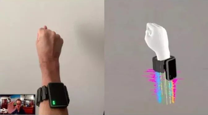 扎克伯格曾表示,CTRL-Labs在做的肌電圖(EMG)腕帶將成為AR眼鏡的關(guān)鍵,因?yàn)椴幌胱層脩魯y帶控制器,而語(yǔ)音和手勢(shì)追蹤的技術(shù)還不夠好。肌電圖神經(jīng)接口技術(shù),可以捕獲肌肉產(chǎn)生的電信號(hào),并且通過(guò)藍(lán)牙把信息無(wú)線傳輸至PC和智能手機(jī)等計(jì)算終端,最終實(shí)現(xiàn)用戶通過(guò)意念控制虛擬物體,比如在虛擬鍵盤上打字。