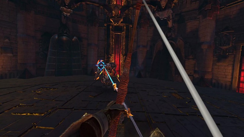 由于是在VR中,要想順利攻擊敵人就需要雙手與主角同步的玩家用力揮動手中的手柄,做出真的砍劈或拉動弓弦的樣子,因此游玩本作非常需要一個可以讓玩家盡情揮汗的空間。