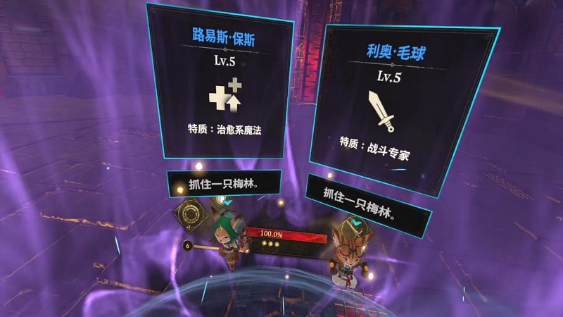 同時游戲里還有一種名叫“梅林”的貓形生物。盡管無論怎么看都和《怪物獵人》系列里的艾露貓有幾分相像,不過這里我們姑且還是管它叫梅林貓。這小東西平時在大廳只會跳舞賣萌,看似弱不禁風(fēng)但實際上卻能提供大用場,玩家可以選擇一只梅林貓作為隨從,讓其提供回血或戰(zhàn)術(shù)支援。因此選擇適合自己的梅林貓也是獲得勝利的重要因素。