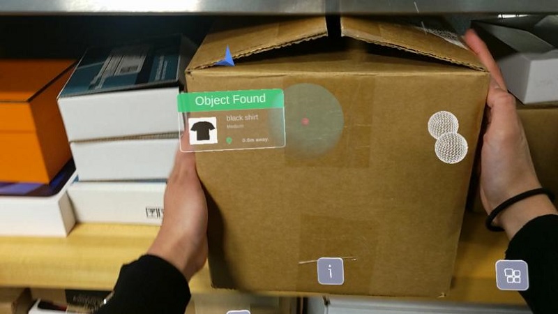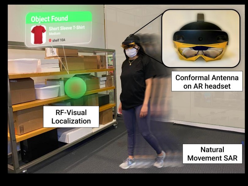 X-AR頭顯配備了具有射頻(RF)感應(yīng)功能的AR-conformal寬帶天線(xiàn),這種靈活的天線(xiàn)與頭顯攝像頭結(jié)合,運(yùn)行基于AR的SAR定位算法,該算法能夠識(shí)別帶有RF標(biāo)簽的物體,即便是特定的材料,如紙板箱和塑料箱。