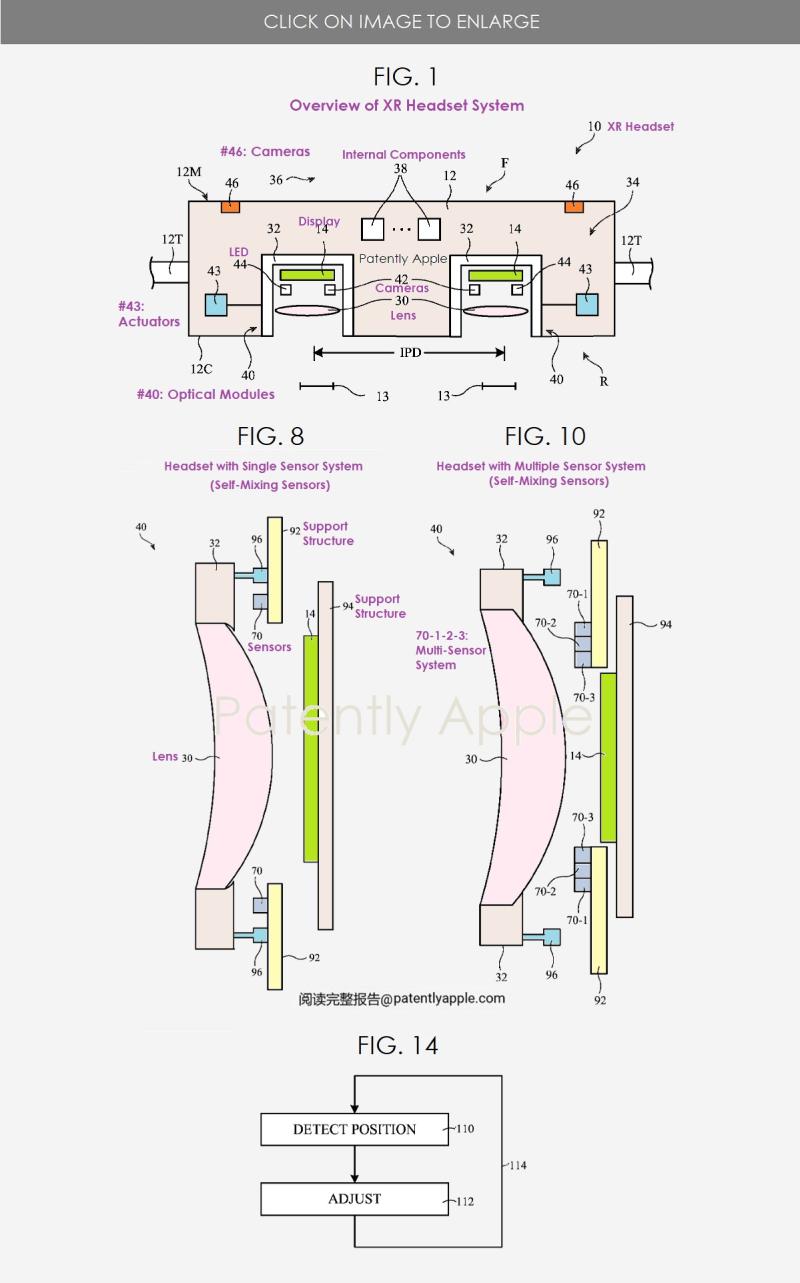 專利預(yù)設(shè)了頭戴式設(shè)備跌落的后果,倘若頭戴式設(shè)備中的組件發(fā)生錯(cuò)位,而為了確保設(shè)備運(yùn)行良好,可以通過光學(xué)自混合傳感器來準(zhǔn)確測量頭戴式設(shè)備中組件的位置,隨后,致動器則移動光學(xué)部件以重置任何檢測到的位置變化。