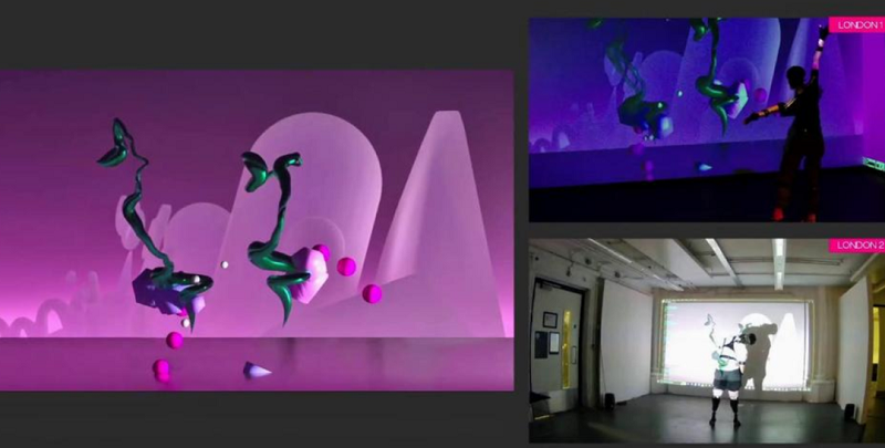 英國團(tuán)隊(duì)Candoco Dance帶來了非常具備人文關(guān)懷的作品「具象身體」。他們研究如何讓基于運(yùn)動數(shù)據(jù)的動作捕捉技術(shù)變得不那么死板,能夠讓虛擬化身實(shí)現(xiàn)更多人體做不到的事情。該作品借助沉浸式技術(shù)理解和表現(xiàn)人類身體,通過舞蹈動作捕捉表演,讓殘疾舞者能夠帶來超越身體極限的奇幻互動和表現(xiàn)。